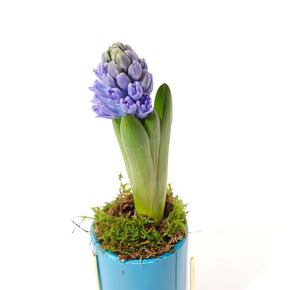 - Floare: Zambilă albastră (Hyacinthus) cu bulb, pregătită să înflorească și să parfumeze întreaga încăpere.